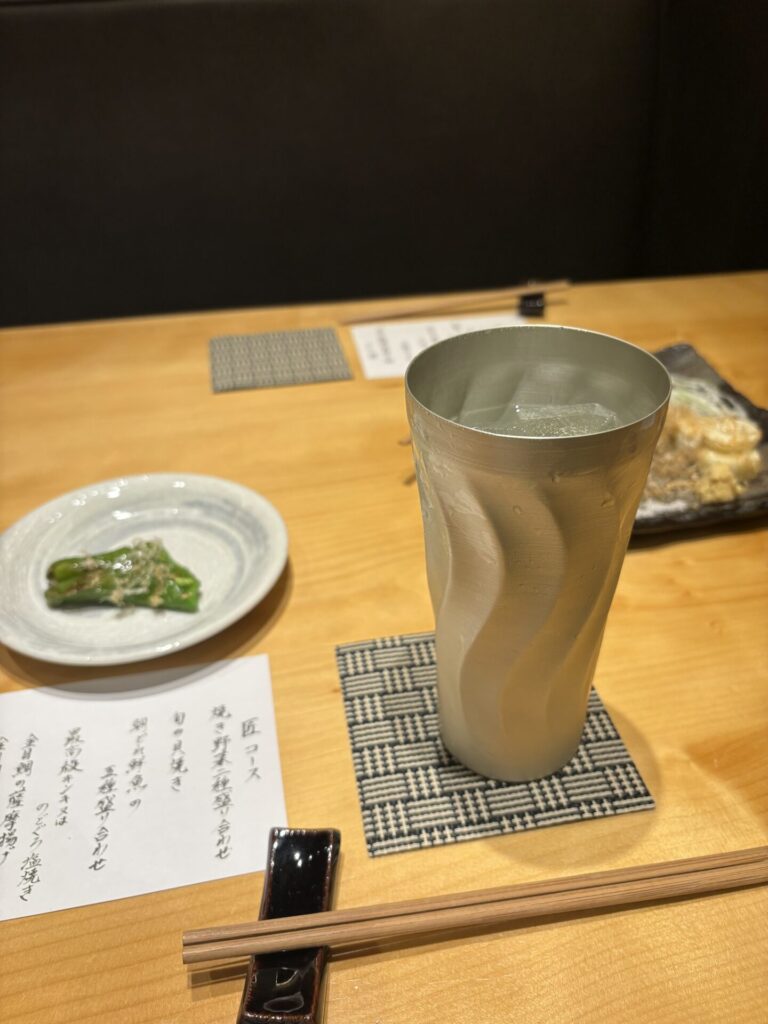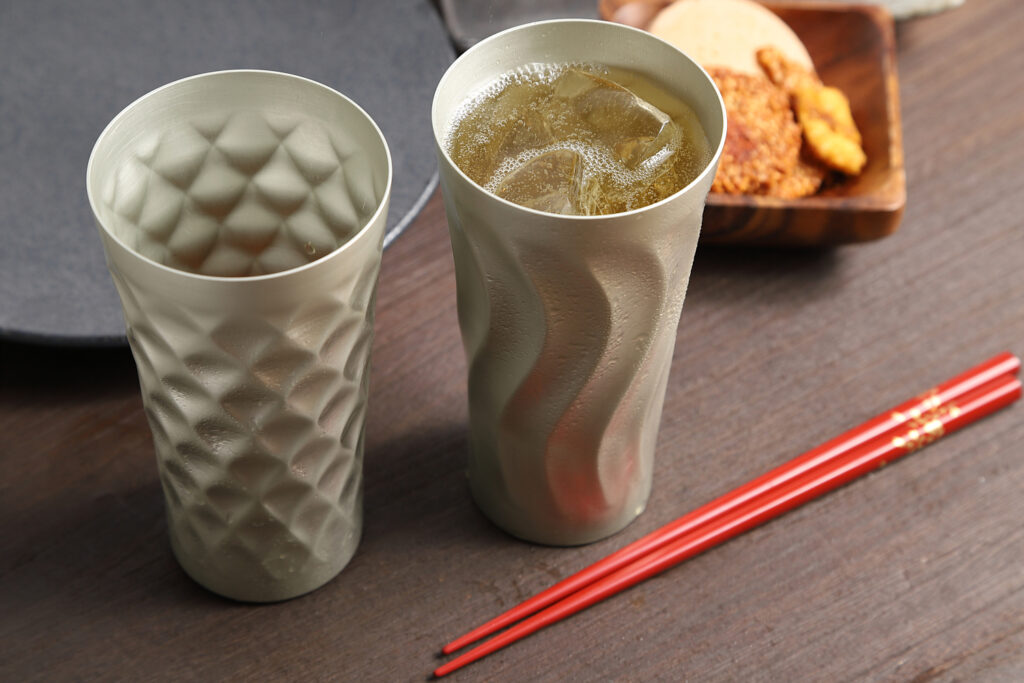 立体的な面が光を揺らし、グラスの中のきらめきを引き立てる。