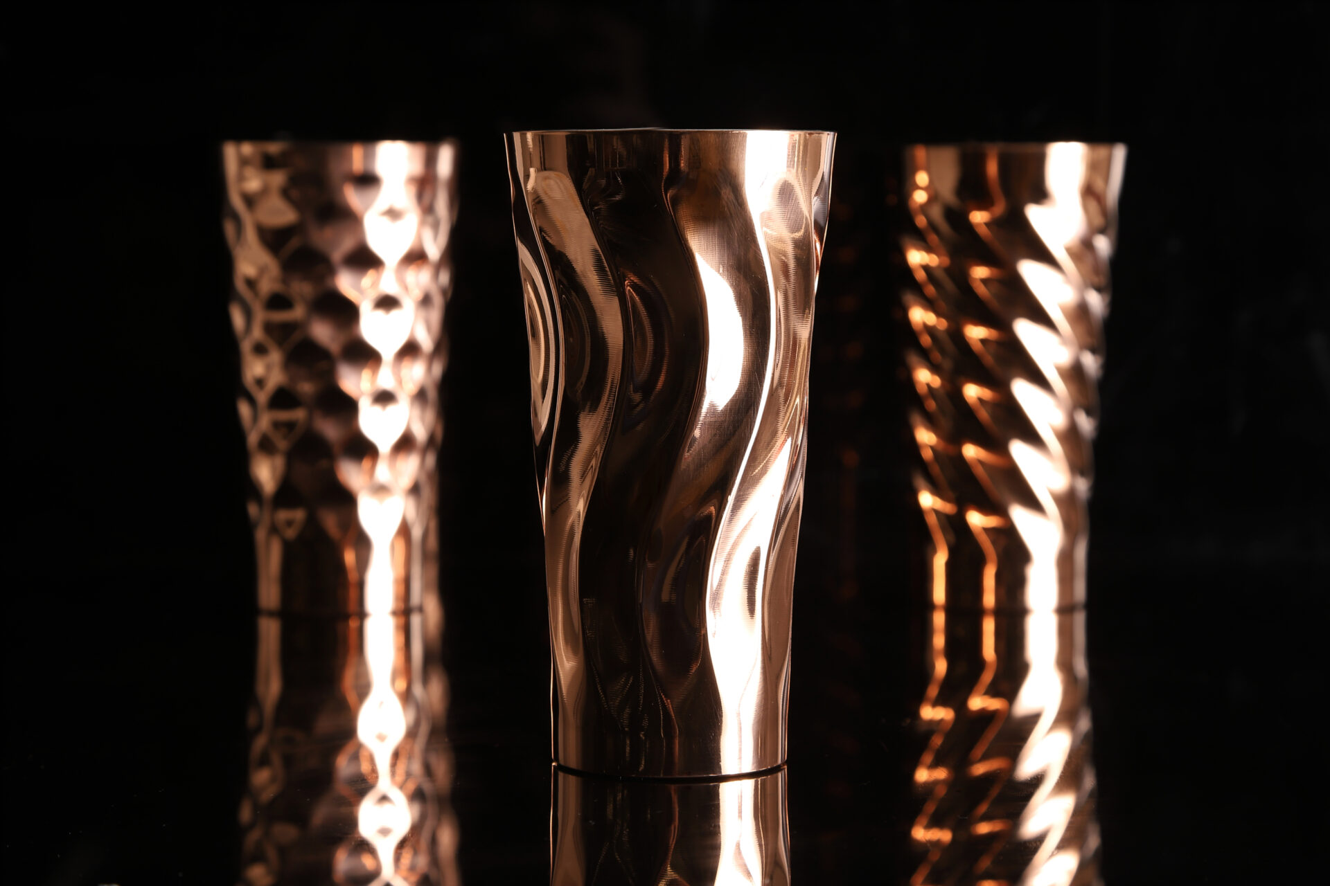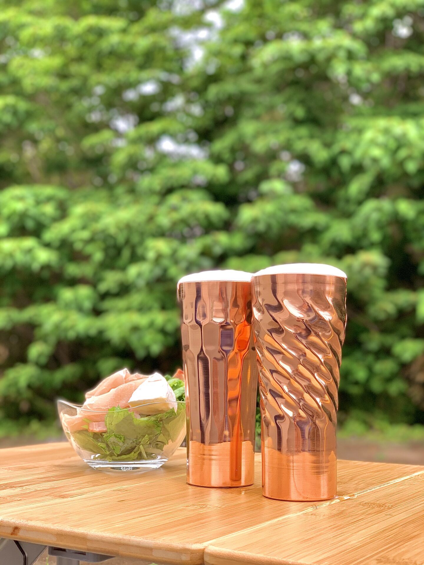 銅のタンブラーCopper Tumbler 存在の光 使わない時間でさえ、美しい。棚に置かれた銅は、さまざまな光をやわらかく受け止め、空間に静かな表情を生み出します。飲むためだけではなく、そこに在るための道具。日常の中に、小さな余白をつくるタンブラーです。